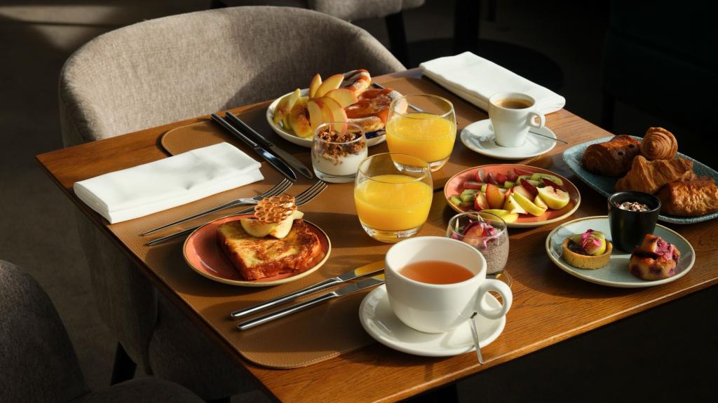 Each morning, savour a buffet breakfast for every stay, at the panoramic Le Roof restaurant.