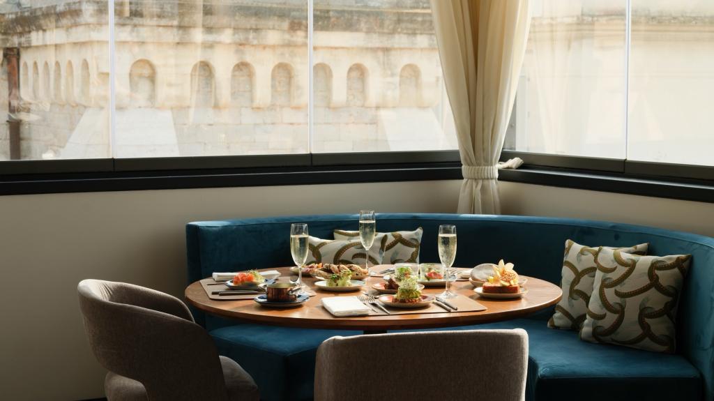 Enjoy a memorable gourmet experience at the panoramic Le Roof restaurant.